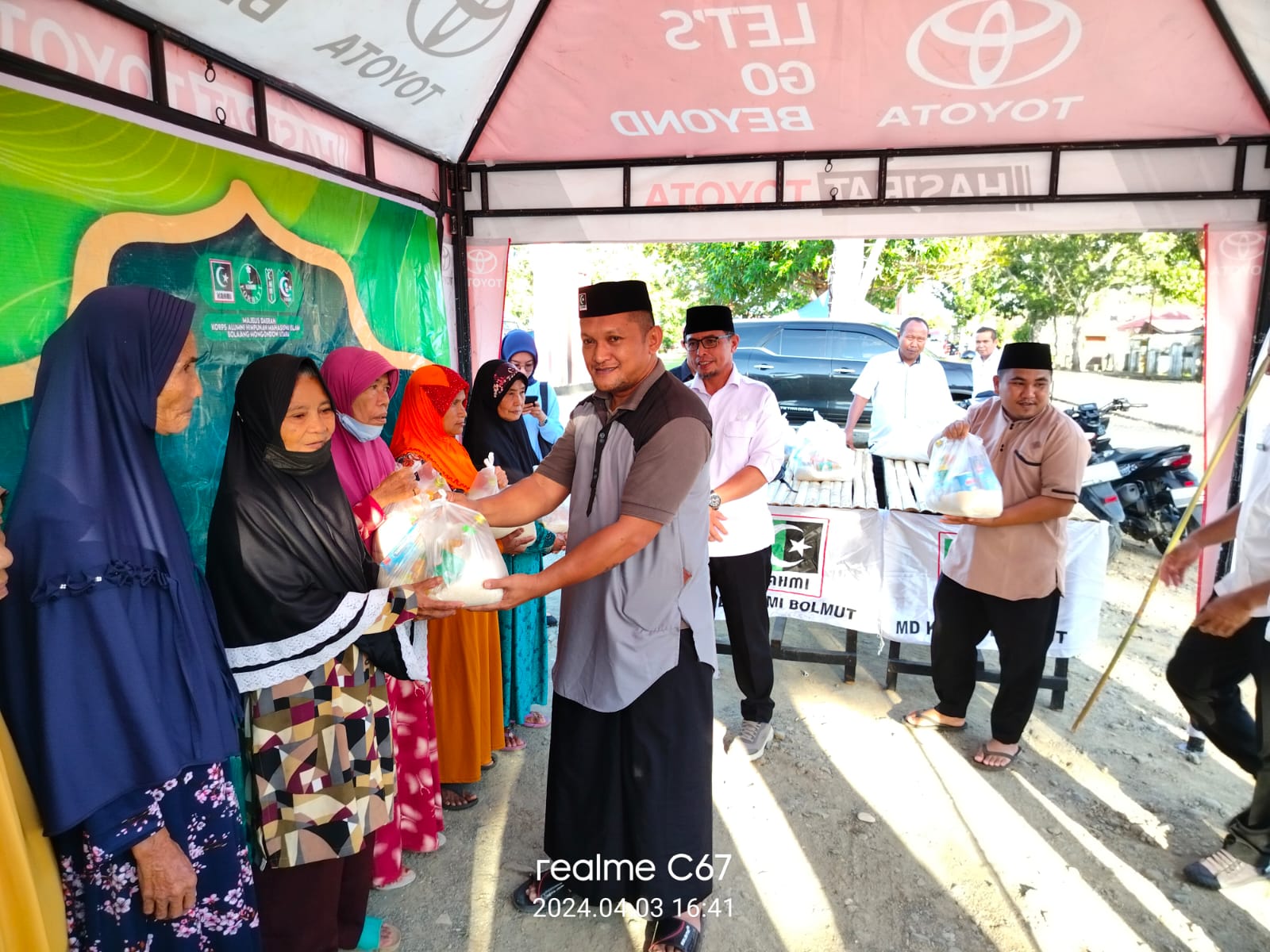 Dalam penyaluran bantuan, sembako diberikan kepada mereka yang membutuhkan, sementara takjil untuk berbuka puasa disalurkan kepada pengguna jalan di sekitar Jalan Protokol Boroko.